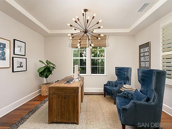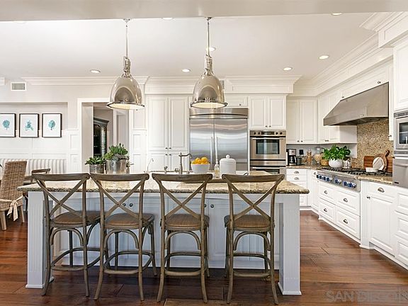 Stunning Cul-de-sac Warmington home in La Costa Oaks South. 4 BR + office w/ gorgeous VIEWS! This home exudes charm, tons of warmth and is flooded with natural light! Upgraded w/ custom woodwork, crown molding, built in banquette, walnut hardwood floors, solar, gourmet kitchen, 6-burner professional Thermador cooktop with griddle. Bosch double oven. Backyard features built-in BBQ, fridge and outdoor sink. The magic of this home and yard are an entertainers dream. This home is one in a million!