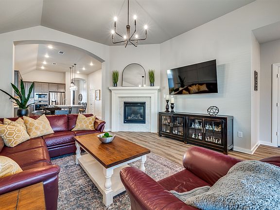 Highland Home feels like NEW! Natural light flows through this 1 story floor plan, connecting the living spaces to a spacious covered patio,perfect for morning coffee or evening gatherings. Luxury vinyl plank flooring enhances all main living areas and hallways. The gourmet kitchen showcases stainless steel appliances, gas cooktop, and built-in microwave and oven, paired with richly stained cabinetry featuring 42 inch uppers with adjustable shelving and pristine white quartz countertops. The breakfast nook flows from kitchen to family room with large walk in pantry laundry area. The spa-inspired primary bath offers a separate shower with upgraded tile surrounds in both the tub and shower. Popular single story home with great floor plan. The 4 the bedroom can be ideal study away from the other bedrooms. Step outside to a spacious covered patio, perfect for refined outdoor living with stone ledge flower beds. Sandbrock Ranch offers incredible amenities with Club house, community pool, playground and walking and bike trails.
