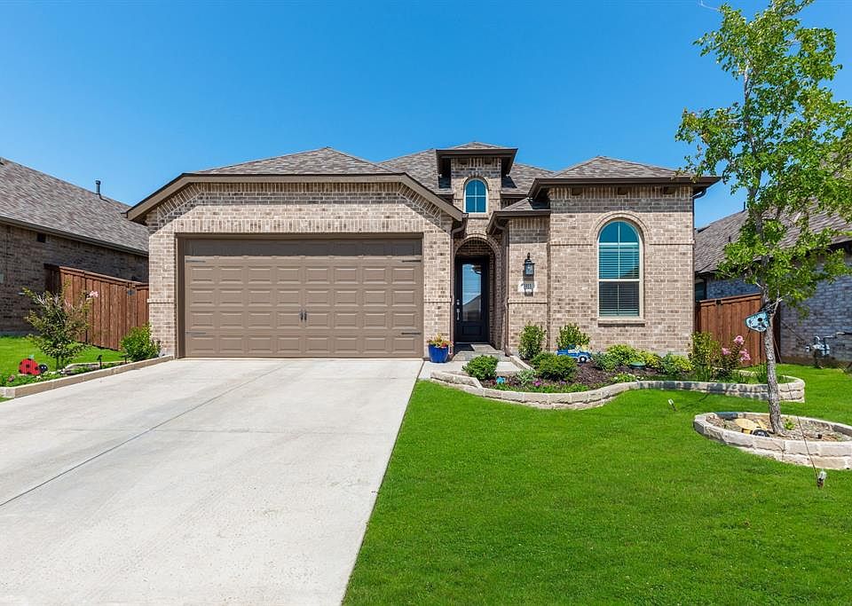 This 2021 Highland Home is a charming home with 4 bedrooms and 3 baths. It is located in the beautiful Sandbrock Ranch community. The house features a covered back patio and a beautifully landscaped yard in both the front and back, offering a pleasant outdoor living space. The open floor plan creates a seamless flow between the rooms, allowing for easy movement and interaction. The bedrooms provide ample space and privacy. The kitchen has efficient space for preparing meals and opens to the dining area and living room with a cozy fireplace. Amenities at Sandbrock Ranch include the Carriage House community center, splash pad, resort-style pool, Tree house and Dog Park.