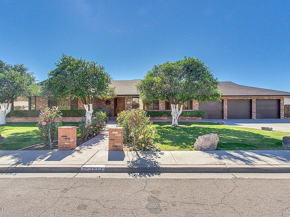 GORGEOUS, ONE-OF-A-KIND, CUSTOM BUILT BRICK HOME IN THE HIGHLY DESIRED CITRUS GROVES NEIGHBORHOOD OF NORTHEAST MESA. THIS SOLID BRICK HOME FEATURES WRAPPED SOFFITS, NEW EXTERIOR PAINT, NEWER ROOF, CUSTOM BRICK PLANTERS, BORDERS AND WALKWAYS, CITRUS TREES, WIDE RV GATE AND CONCRETE TRAILER STORAGE AREA. THE 4-CAR GARAGE WITH TALL 8 FOOT GARAGE DOORS INCLUDE A STAINED FLOOR, APPROXIMATELY 200 FEET OF LADDERED STORAGE AREA IN THE ATTIC, TWO STORAGE ROOMS WITHIN THE GARAGE, SINK, AND ACCESS TO THE BACKYARD. THIS UNIQUE BEAUTY FEATURES A BREAKFAST AREA WITH FLOOR TO CEILING OAK BUILT-IN CABINETRY, SECRETARY DESK STATION, UPGRADED ARCADIA DOOR, ACCENTED WOOD CEILING AND STORAGE CABINETS GALORE THAT ACTUALLY DEFINE THE SURROUNDING ROOMS!
