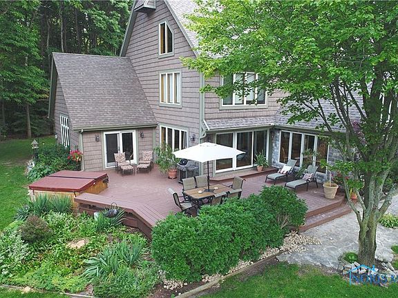 One-of-a-kind LAKE FRONT timber-frame home on 8.5 acres. Open & spacious, private & secluded. New roof, siding, windows. Updated baths. Gorgeous setting includes separate lake-house, garage w/mother-in-law suite, potting shed, deck w/hot tub, patio w/fountain. And, the list of WOW's goes on and on!