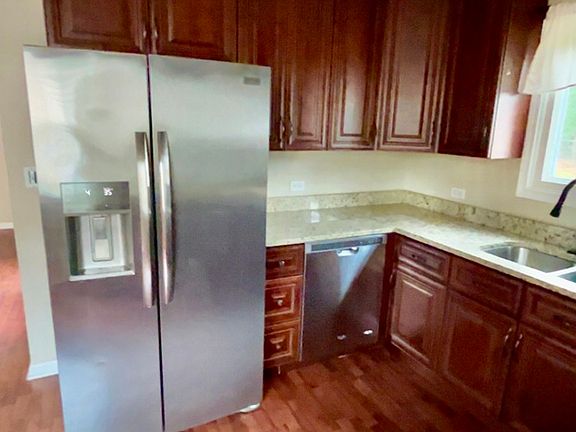 This beautiful 3-bed, 2.5-bath hillside ranch in Island Lake, IL shines inside and out. Enjoy a modern kitchen with stainless steel appliances, granite countertops, 42" self-closing cabinets, and an undermount sink. Fresh paint, vinyl flooring, updated lighting, ceiling fans, toilets, and laundry tub enhance the open floor plan. The basement has a full bathroom with a bonus room and a bar. Additional highlights include furnace 2023 built-in shelving, new pine railings, a fenced yard, water rights, and proximity to the beach (just 2 blocks away). Move-in ready!