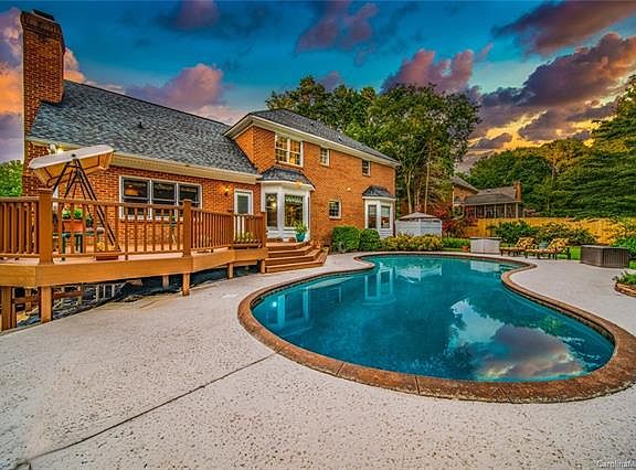 Stunning full brick one owner custom home located on 1.06 acres in Providence Place II. This home offers 4 bedrooms and 3 baths, flex room and bonus room. This private oasis provides ample space to work and play at home. Relax in your own private pool. The downstairs bedroom is being used as an office. Privacy abounds as you approach the home and are welcomed by a long driveway and side load garage. The home boasts two living areas and an upstairs bonus room/bedroom. Kitchen with quartz, breakfast area and school/work desk, bay window that overlooks the pool and adjoins the family room with fireplace that leads to the deck and pool. Private backyard with woods surround this expansive property. Irrigation in the front yard. Dual stairs. This home is a rare find offering a serene environment, acreage and zoned to desirable Weddington Schools while conveniently located close to a plethora of amenities. Welcome to your private oasis for work and play!