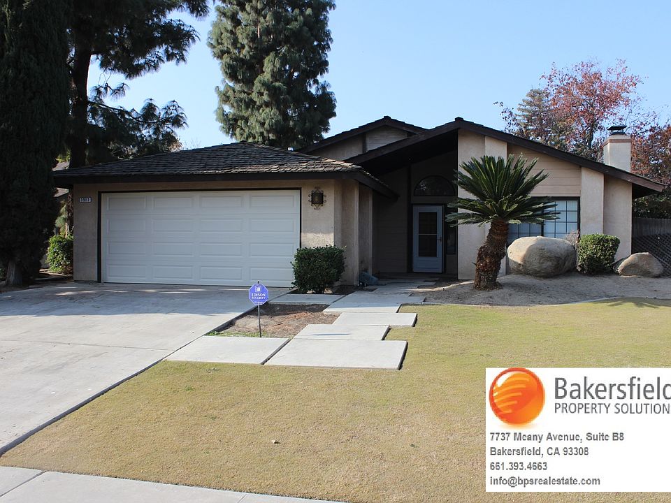 Three bed, two bath home in Southwest for $1295! Located in the Laurelglen neighborhood, this home features brand new carpet and new paint. There's a huge master suite, large covered patio and will have a new roof! Attached two car garage and gardener is included. Please visit our website at www.BakersfieldPropertySolutions.com to see other Bakersfield houses for rent. If you are a property owner looking for Bakersfield property management services or you are looking for a Bakersfield property manager please visit our website at www.BakersfieldPropertySolutions.com or call us at 661.393.4663. We would love to help. BRE# 01810009