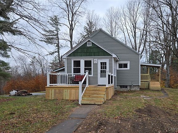 This cozy little, nicely remodeled cottage is setup with 2 bedrooms, 1 full bath, Generous living area, and this large private yard overlooking 1.9 acres of wooded lot. There is a smaller room, currently used as a childs room that could be updated with a space that suits your needs. The stairs lead up to a full attic space giving you the potential of easily creating two more livable spaces. Mean while incorporate the stairs into your decor. Having a full walkout basement has it advantages as well. With a concrete block foundation, 3 different spaces with direct access to the outside. You may want to re-finish. So here you go! Get ready for the Season! Close to the trails, C8C. Investment property or first time home opportunity.