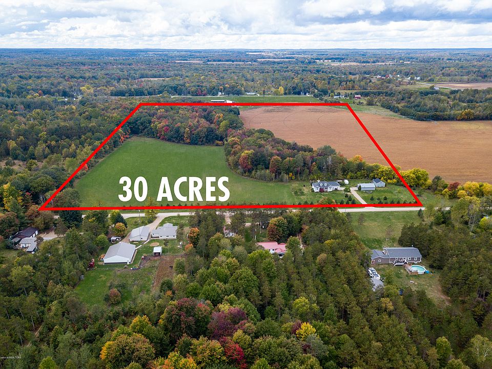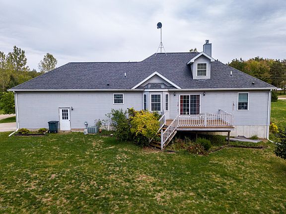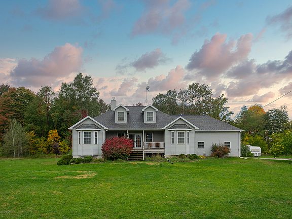 Welcometo the country. This custom built, 2004, 5 bed/3 bath home has a finished lower level, stone fireplace, bedrooms with bay windows, open concept living area, master suite and excellent views of the countryside. The bedroom loft would be great for a home office and there is even new fiber optic internet at the road. The deck looks out to your new farm with plenty of room to have cattle, horses, quads, crops, or chickens. You could grow the wheat for your pancakes and pour your own maple syrup over them. There is enough wood to heat your entire home and shop with. One pole barn 24 x 32, would be excellent for shelter and hay storage.