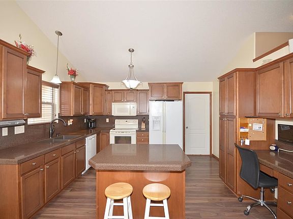 Completely move in ready ranch in the Maize School District! WOW... what an awesome and updated kitchen! Plenty of counter space built in desk and island. Warm welcoming colors through out 2 fireplaces Open floor plan and rich hardwood flooring. 5 bedrooms and 3 baths means there is plenty of room for a growing family. Great space in the basement with wet bar and still room for storage. The play-set and fire pit in the backyard even stay with the home. This is truly move-in ready you have to see to believe!