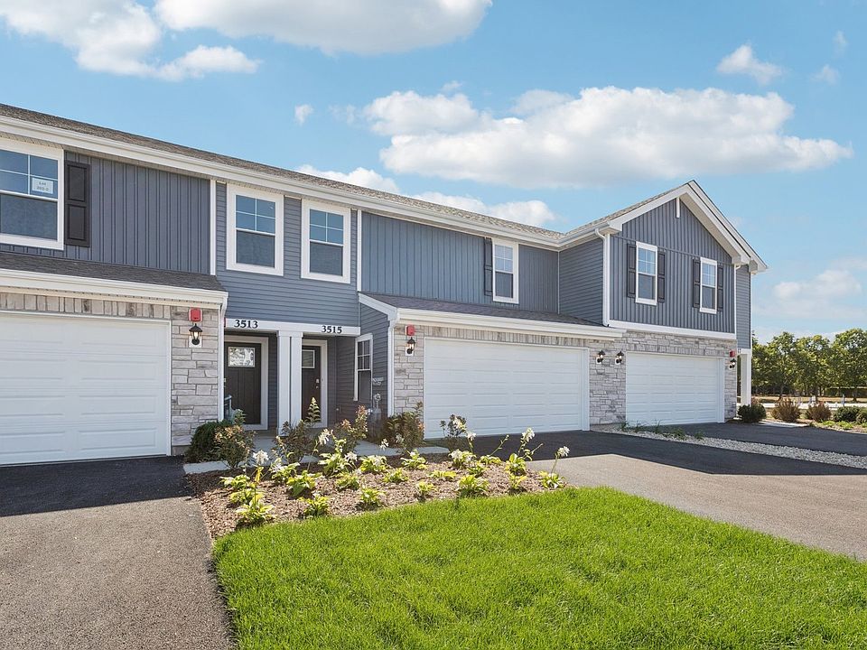 Discover yourself at 3513 Richardson Cir, Yorkville, Illinois, a beautiful new home in our Grande Reserve community. This townhome move-in ready NOW! Homesite includes a fully sodded yard that is maintained throughout the year as well as snow removal in the winter. This home is built on a premium lot with a spacious back yard. This Tallmadge townhome plan offers over 1,665 square feet of living space with 2 bedrooms plus a loft, 2.5 baths, a mudroom and a 2-car garage. As soon as you step inside, you'll be greeted by our open concept living area, featuring luxury vinyl plank throughout the main living areas. The expansive kitchen overlooks the dining and great room areas, making it the ideal space to entertain. Additionally, your kitchen features designer 36-inch cabinetry, a spacious island with quartz countertops, and pantry. Enjoy your large primary bedroom with a walk-in closet and connecting en suite bathroom. The rest of the upper level features a laundry room, secondary bedrooms with a full second bath, and linen closet. You'll find luxury vinyl plank flooring throughout the main level living space, bathrooms, and laundry. Impressive innovative ERV furnace system and a tankless water heater round out the amazing features this home has to offer! All Chicago homes include our America's Smart Home Technology, featuring a smart video doorbell, smart Honeywell thermostat, smart door lock, Deako smart light switches and more. Photos are of similar home. Actual home may vary.