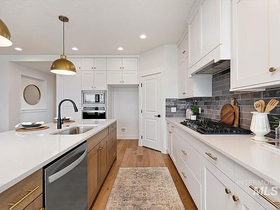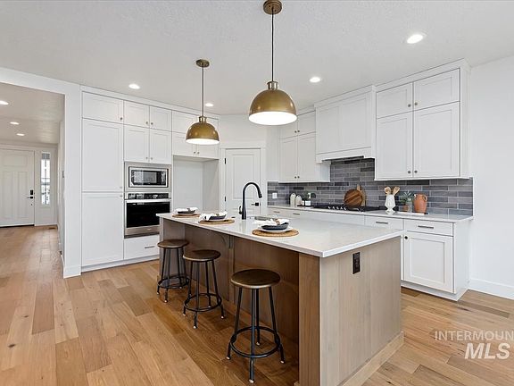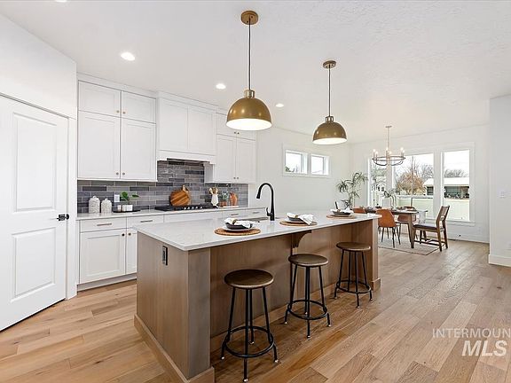 A rewarding escape peacefully situated at the end of a quiet cul-de-sac. This MOVE IN READY new construction home located 15 minutes from Downtown Boise or 10 minutes from the Meridian Village putting shops, restaurants, & entertainment right at your fingertips. But if staying home is what you prefer you won’t mind all the space here. Enter this open concept home to find the kitchen at the heart of the home with cabinets to the ceiling, quartz counters and SS appliances, flanked by a dining room and a great room with a gorgeous stone fireplace. The owner’s suite is secluded downstairs, separated from one bedroom. On the upper level, you’ll find 3 more beds, a bath and a huge bonus room. This home is perfect for a large family and perfect for those who enjoy entertaining or just love having space. Pictures are actual photos of the home.