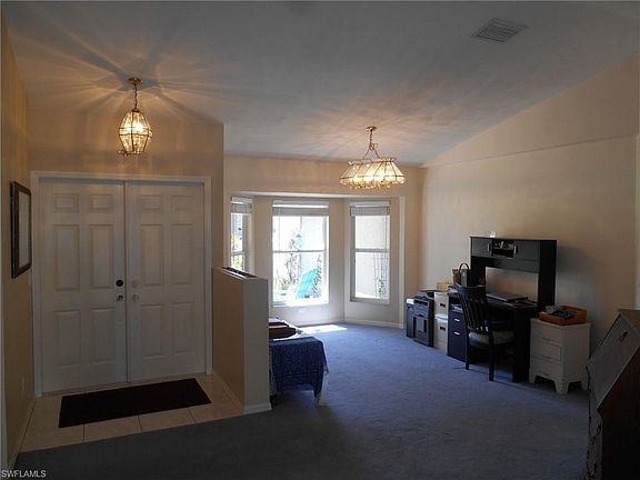This 4 bedroom pool home is nestled in the heart of the Country Club area in Cape Coral. It has all city utilities, a large family room with cathedral ceilings, updated kitchen with wood cabinets and granite counter tops, cathedral ceiling in the living/dinning room and a vaulted ceiling in the master bedroom. The laundry room is spacious and the 4th bedroom is separate from the other rooms and would make for a great home office. There are several sets of sliders leading to the spacious under truss lanai and French doors going out from the master bedroom. The pool is a good size and the back yard is fenced with lots of tropical plants that give you privacy and the feeling like you are at your own vacation resort. New AC in 2014, Re-plumed in 2013, Roof in 2012. There are some storm shutters but not on all the windows. With a one year warranty included, this house is a must see. Call today as it will not last long!