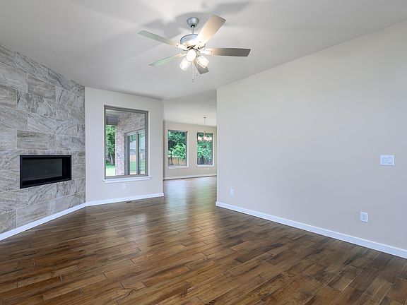 Introducing a meticulously crafted all-brick home in a cul-de-sac location. This remarkable property offers a thoughtfully designed split bedroom floor plan featuring 3 Bedrooms, Living Room with a remote controlled 42'' deluxe linear gas log Fireplace, an Office/Study/Formal Dining Room with elegant French Door entry, a large Kitchen/Casual Dining combo and a 3-car Garage with pull down attic access to 96 sq.ft. of attic flooring. Step inside to discover the allure of 3/4'' Pecan hardwood flooring throughout most of the house. The Laundry & Bathrooms boast beautiful tile, while the Bedrooms provide plush Mohawk carpeting for ultimate comfort. The Kitchen showcases granite counters, exquisite staggered-height custom built cherry cabinets with soft close drawers/doors, and top-of-the-line Whirlpool appliances. 2 convenient pantry closets compliment the functionality of the space. The Master Suite features a double bowl cultured marble vanity, a luxurious jetted tub, a spacious tiled walk-in shower with a seat & glass door and a large custom walk-in closet with built-ins. All Moen fixtures throughout. A covered Patio complete with ceiling fan provides a serene view of the backyard while both front & back yards are equipped with in-ground sprinklers to help maintain a lush landscape. Utility efficiency is maximized by a 92% TRANE HVAC with 13 Seer Air. This home offers the best of both worlds, with a Springfield address just outside the city limits, providing all the convenience of city utilities without any HOA dues. Easy access to the West Bypass provides swift travel routes to I-44, Republic, James River Freeway, and local amenities. There's optional membership available to the subdivision swimming pool. Top it all off with the sought-after Republic Schools, and you have found the perfect place to call home.