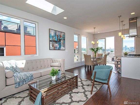 In the heart of Wallingford.Sophisticated and Large Living (1846 sq ft) in this fabulous View Home.Sleek & stylish kitchen w/ custom cabinets, stone countertops & gorgeous tile accents.Master en-suite w/walk in closet. Junior en-suite w/ 2nd living area.In-floor radiant heat & 1 car garage.Sunny southern exposure & floor to ceiling windows flood the entire home w/ light.Sip your morning coffee while watching sea planes take off from the incredible rooftop deck w/views of downtown & Space Needle.