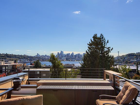 In the heart of Wallingford with Stunning Views of the Cascades, Olympics, Lake Union and City skyline. Sophisticated and Large Living.Sunny southern exposure & floor to ceiling windows flood the entire home w/ light. Sleek & stylish chef's kitchen w/ custom cabinets, quartz countertops & tile accents.Master en-suite w/ work space area. Junior en-suite w/ 2nd living area. Modern & unique layout with sight lines designed to maximize views while maintaining privacy.Gorgeous rooftop deck.In-floor radiant heat. This is the most secluded home in the development offering a private patio & partial fencing.Steps to Gas Works Park, Burke Gilman Trail, trendy restaurants & shops.