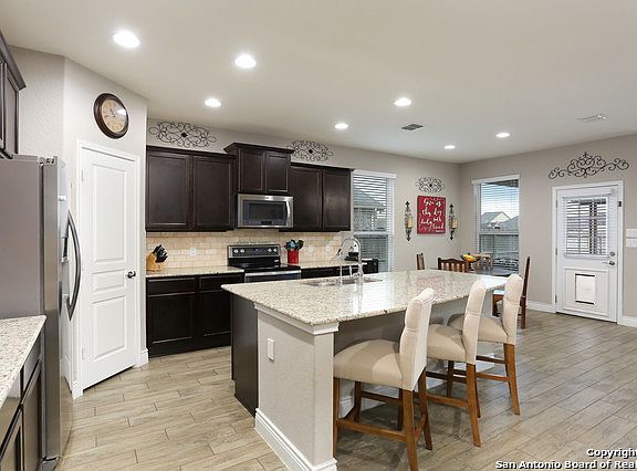 This centrally located home is great for families and entertaining. It impresses with the open floorplan, high ceilings, and spacious game room. Matching granite in the kitchen and office, wood-look ceramic tile, and 3-car tandem garage, make the home most desirable. The massive owner's suite w/oversized closet and shower=luxury living. The oversized back yard boasts an amazing outdoor entertainment area complete with fireplace, full kitchen, tongue and groove ceiling, and elegant lighting! Ask for video!