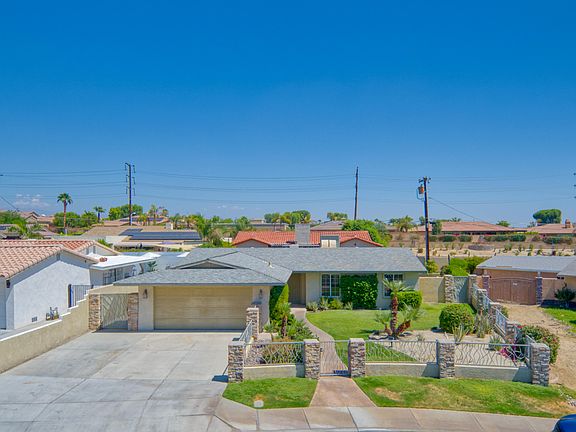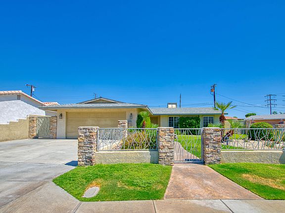 Check out this lovely 3 bed 2 bath home with a private pool located in south Cathedral City and just one block away from Rancho Mirage! Fresh interior paint, newly installed carpet and pool pump, and newer HVAC unit. Living room with fireplace opens to the backyard and connects to the bar, dining area, and galley kitchen which opens to the side yard and connects to the attached two car garage. Backyard includes a covered patio with a series of ceiling fans, Pebble-Tec pool and mountain views. Landscaping choices are another plus. Master Bedroom features a closet with built-in cabinetry, private bath and a glass slider that opens to the pool. Bedrooms Two and Three enjoy views of the front yard and San Jacinto Mountains and offer easy access to the hallway bath. Laundry area and nearby built-in cabinets are found in the garage which includes direct access to the home. So much to LOVE here on Maria Road!
