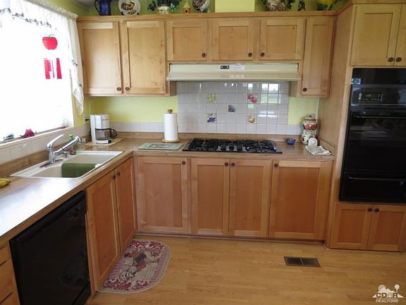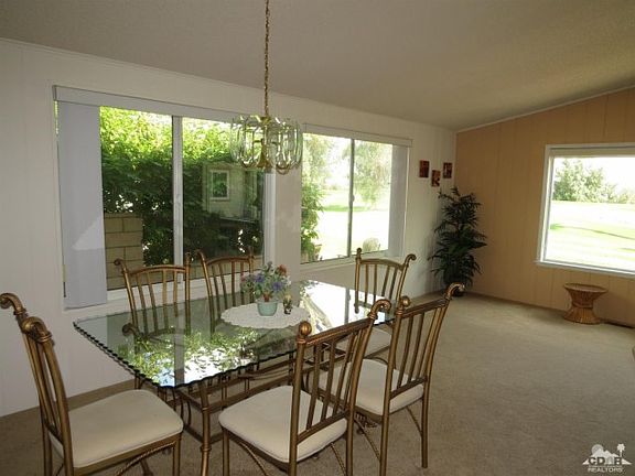 Gorgeous fairway, Desert and Mountain View home with curb appeal on prominent corner lot. Light and bright open kitchen, dining and living rooms are designed to display the view. Kitchen has a skylight, new appliances, including new dishwasher, range, oven, and a brand new garbage disposal. The large laundry room with built-in desk/office is adjacent to a walk-in pantry. This 1647 square foot beauty features 2 bedrooms, 1.75 baths, new laminate flooring and carpet, plus a covered patio. The double garage is detached. Located near major shopping and education centers with easy freeway access. The home is located in Ivey Ranch CC & GC, a gated, senior community of manufactured homes integrated with a 9 hole, SCGA rated, Semi-private golf course, Pro-shop, Club house and seasonal restaurant. In Ivey Ranch you own the land