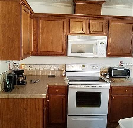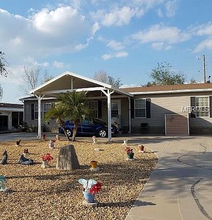 This lovely 4 bedroom split bedroom plan home has a Master bath with garden tub, separate shower, and dual sinks. Beautiful stone front yard is low maintenance, has fenced back yard. Minutes from Lake Eustis and Chain of Lakes. New roof in 2017. New AC in 2014. New Appliances 2014, Side by side refrigerator, electric glass top range, Dishwasher, Front loading Washer and dryer. Partially furnished Including Living room love seat, Two recliners, One rocker, 50" Plasma TV, Dining room set, Master bedroom set with King size bed