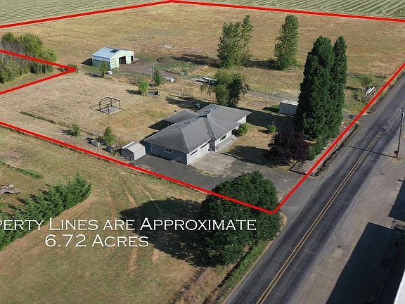 Incredible opportunity for a small farm between Albany & Corvallis. Single story 3BR/2BA home on 6.72 flat acres. Barn w/2 stalls, livestock area - pastures mostly fenced. Great gathering spaces inside and out. Built-in storage in the primary bedroom. Gas range, FA heating & WH, solar panels on the barn roof provide plenty of electricity to power the house & then some! Recently updated LED lighting throughout. Bonus storage room/pantry off kitchen plus utility room in garage. Covered back patio plus gazebo!