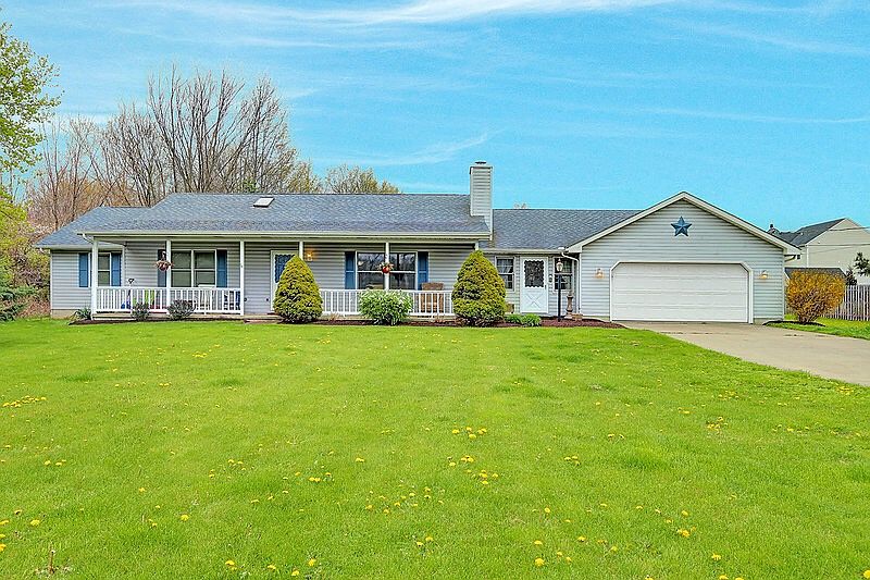 This spacious, 3 bedroom, 2 full bathroom ranch has a recently updated kitchen with new granite counter tops and stainless steel appliances. Sunny skylights accentuate both full bathrooms, including the en-suite master bath. The laundry room conveniently located right off the kitchen includes washer and dryer with outside access. Recent improvements include a newer roof, newer HVAC system, whole house humidifier, hot water heater, and new interior paint. Cozy up by the fireplace in this incredible home on over 5 acres of beautifully treed, prime Avon property conveniently located to schools, shopping, dining, and I-90.