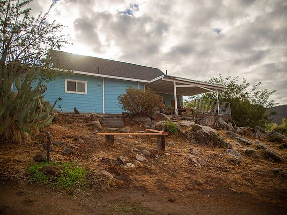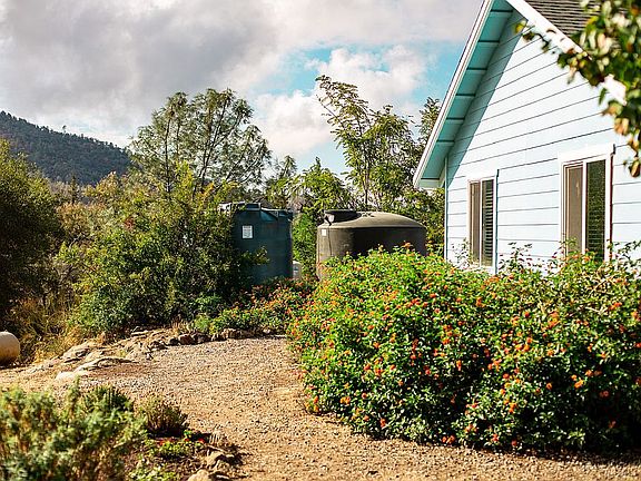 A beautiful Sierra Foothill home just minutes from the historic town of Coarsegold. This 3 bedroom 2 bathroom home features 2 additional rooms (office/ den) and/ or (office/ storage)? The home has high ceilings, loft, finished concrete flooring, solar (for private well), 5000 gallons of water storage, large fenced garden, separate laundry room, direct evaporative cooling, spectacular views, and zoned for an additional single family home. The property offers work shed (decommissioned semi trailer) and a finished outbuilding (office) with privacy and built in cabinets. More than half of the acreage is useable with fencing for animals/ livestock, shed with a single stall, and oak shading for those hotter days. The house is unique and must be seen!