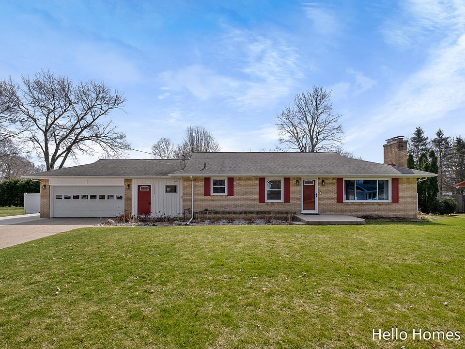 Say ''Hello!'' to this 3 bed, 1.5 bath ranch in award-winning Rockford schools! Conveniently located near Gold Dust Park, Blythefield Acres Pool club, the Rogue River Trail, and Northland Drive with grocery stores, restaurants, and more. Step into this updated ranch and immediately notice the bright kitchen with new stainless steel appliances (including a beverage fridge!), modern subway tile backsplash, pantry, and dining area. Connected to this space is the formal living room, with a gas log fireplace (2023), built-in storage, and large windows overlooking the front yard. Moving through, you'll find three spacious bedrooms with new carpet (2022), and both a full and half bathroom with modern updates. The main floor continues with a spacious family room featuring floor-to-ceiling slider doors that face south, overlooking the backyard patio. A laundry room with shelving and a folding counter completes this level. The basement offers a large rec room with an additional fireplace, plus tons of unfinished storage space. Outside you'll find a HUGE fully-fenced backyard and recently extended patio, providing ample space for gardening, entertaining, and more! A 2-stall attached garage with epoxy floors (2022) completes this home. House includes a water softener and reverse osmosis system (purchased 2023). Schedule your showing today! Any and all offers due on Monday, 3/25 at noon. No offers will be reviewed prior.