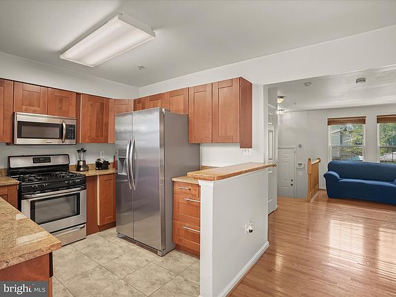 Welcome to this stunning end-unit townhome in the desirable Colony Square community of District Heights. Step into the front foyer and be greeted by an airy living room flooded with natural light, featuring a neutral color palette and beautiful hardwood floors that flow throughout the home. The dining area is perfect for entertaining, offering seamless access to the deck with views of the landscaped grounds and a spacious patio. The eat-in kitchen is a chef's dream, boasting granite counters, a breakfast bar, gas cooking, stainless steel appliances, and soft-close cabinetry. Retreat to the primary bedroom suite, complete with a large closet and an attached dual-entry bath for your convenience. Two additional bedrooms complete the upper-level sleeping quarters. The lower level expands your living space, featuring a cozy gas-burning fireplace, a full bath, a laundry area, and access to the rear fenced yard. This home offers comfort, style, and ample space for all your needs. Amenities include tot lots and a tennis court for convenient recreation as well as major commuter routes MD-218, MD-4, and I-495.