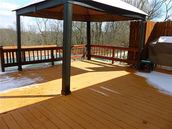 Brick ranch ready for summer fun=Large deck, & fenced pool. Down a private lane behind a large parking lot and picnic pavilion. Spaciously deceptive. Updated kitchen with oak cabinets, new counters, kitchen island, & sink about 5 yrs. old. Large living room is open to the dining and kitchen area. Newer roof is 5 yrs. Breezeway/family room a bonus. Second kitchen in LL, stove, EIK. Possible in law suite with full bath in LL. Could be a 4th bedroom if you add a closet. Furnace & humidifier only 7 yrs. Main bath has a new tub surround, toilet,vanity & linen closet (5-7 yrs. remodel) Pool has a new pump filter & auto- chlorinator. 4 Foot deep. Great location!! Central Valley school.