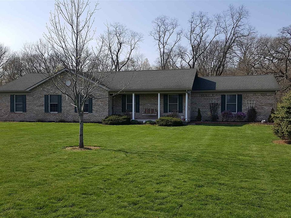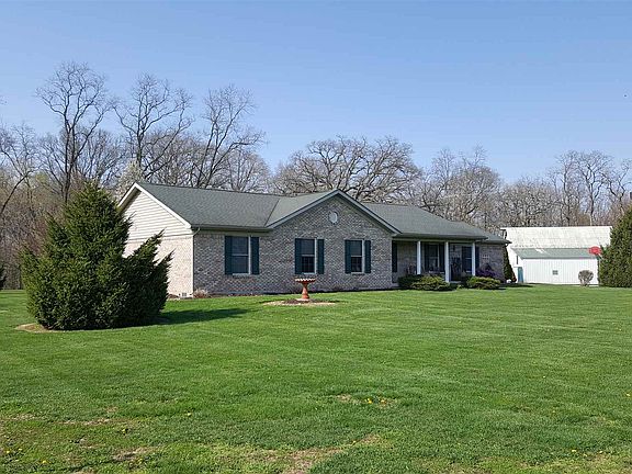 Beautiful place to raise a family! Hunters paradise...lots of mature trees to log out....pasture, woods and trails for horses or cows...3 barns with lots of space...fruit trees and a grape harbor!! Above ground pool, covered shelter and brick firepit add to the fun and relaxation this property has to offer. With stunning views from the front porch to the back deck, this 3 BR/2 bath brick ranch is open concept, vaulted ceilings, with a large master suite, eat-in kitchen and oversized laundry room that can double as a mudroom. Garage holds a canning station with gas stove, access to the large crawl space for storm shelter and much more. Situated at the end of a long lane on 12.42 acres, this home is a rare opportunity to buy a piece of heaven right here in Tippecanoe County!! Serene, quiet and quaint all wrapped up into one!!!