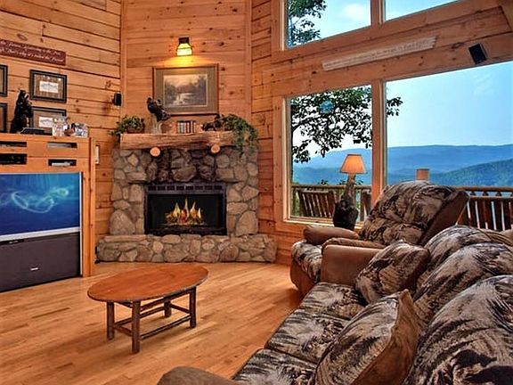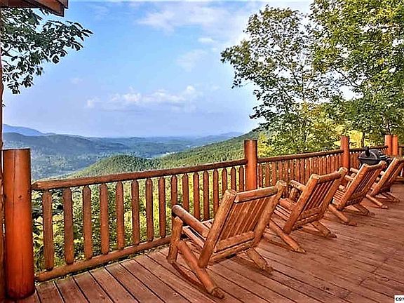 Enjoy the MAJESTIC MOUNTAIN VIEW from this mountain retreat--you can see for miles, the pictures are nothing compared to the real view. You'll feel like you are on top of the world in this two-bedroom, two-bath luxury cabin that provides all the comforts and amenities of a fantastic vacation/investment property. The cabin comes completely furnished with beautiful, top notch furnishings and décor. Both bedrooms feature a jetted-tub and a private bath, with the main-level bedroom containing access to a private deck and the upstairs bedroom has a gas fireplace. A cozy living room has an impressive, stone-stacked, fireplace and more than enough room for everyone to gather and enjoy the view from the over-sized windows! Fully equipped kitchen. While out on the porch, you can enjoy the hot tub, swing on the porch swing, settle in one of the rockers, or prepare dinner on the charcoal grill. Lots of upgrades in the last couple of years include new HVAC, hot tub motor, pool table, porch and patio furniture, grill and more. Great location in a gated community--Brother's Cove Mountain Resort. Rentals already booked for 2019 total $43,954
