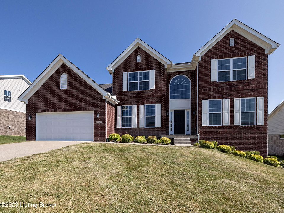 Welcome to the highly sought after Heather Ridge subdivision in La Grange, KY. This beautiful home is only 4 years young, but feels and looks completely brand new. This home offers a stunning entry foyer with formal dining room and flex room off to each side. The entry foyer flows into an open concept which connects the living room, kitchen, and eat-in dining room/morning room that is great for entertaining. This spacious home consists of five bedrooms, two full bathrooms, and one half bath. The main level has one bedroom and one half bath while the second floor consists of four bedrooms and two full bathrooms, one of which is the primary bedroom and bathroom. You will experience luxury at its finest as you enter through double doors into the primary suite with a large primary bath No more lugging your laundry up and down the stairs with this second floor laundry room. On the outside, you have a newly laid brick patio for enjoyment and an attached two car garage that completes this home! The basement is fully plumbed and ready to become the basement of your dreams. Don't miss out on this wonderful opportunity to live in the designer neighborhood of Heather Ridge.
