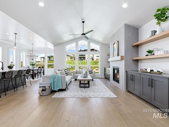 PRICED TO SELL! The Ventura is a well designed single level home located in prestigious Boulder Point neighborhood in highly sought-after NE Boise. Greeted by an array of large windows & gorgeous trim work that draws you in. Expansive vaulted ceilings w/wall of windows in great rm frames in the foothill views & brings in an abundance of natural light. Well-appointed kitchen features custom cabinets, ample counter space, Wolf range & double ovens, 17’ x 5’ butler’s pantry w/ bake center. Spacious bonus rm w/full bath adds additional flexibility. Min.. You’ll love the 1432 sq. ft. of garage space w/rm to park all your toys. 10’ set backs allows for rm between you & your neighbors while allowing for corridor views of Barber Valley.