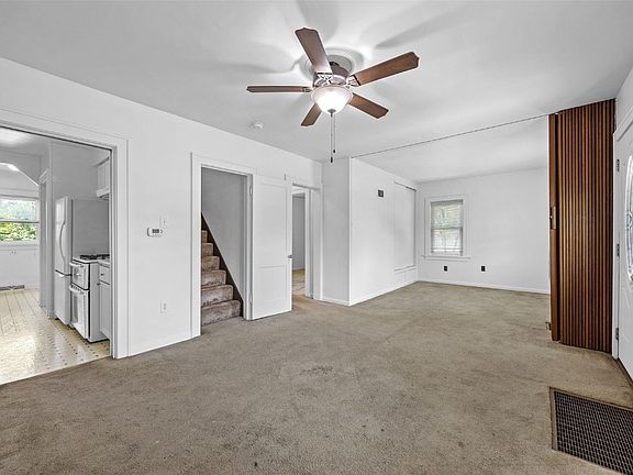*Sale pending*Cute house! This one has had the same owner for 50 years! The main floor has a living room, kitchen, dining area, bedroom, and full bath. Upstairs you have two rooms including one bedroom. There are hardwood floors underneath the carpet on the main level. Updated high end interior paint throughout. Windows have been replaced. Vinyl siding on the exterior. All appliances included. This is a solid built house!