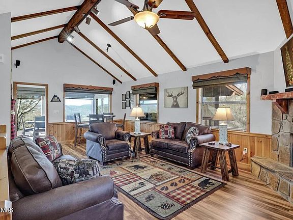 ''Outlaw Moose Hideaway'' offers Absolutely stunning views from every deck, porch, and window in this immaculately kept mountain home. If you're looking for exceptional views with easy access in the heart of the Smokies, this property is right for you! Income producing 3 bedroom and 3 bath with all new furnishings is easy to get to with no crazy roads. Interior is cozy and comfortable with stone fireplace, lots of windows to enjoy stunning mountain views, vaulted ceiling, bedroom/bath/jacuzzi tub on main floor. Lower level contains spacious bedroom with full bath. Large laundry room.Nestled on a ridge within a stone's throw of the Great Smoky Mountains National Park, the cabin offers some of the best views to be found in the Smokies. Both covered and uncovered porches and decks ideal for spending time enjoying the beauty of the mountains. Interior is cozy and comfortable with stone fireplace, lots of windows to enjoy stunning mountain views, vaulted ceiling, bedroom/bath/jacuzzi tub on main floor. Lower level contains spacious bedroom with full bath. Large laundry room. HOA prohibits hot tubs. Excellent water! Super LOW HOA fees cover the community water system, road, and security.