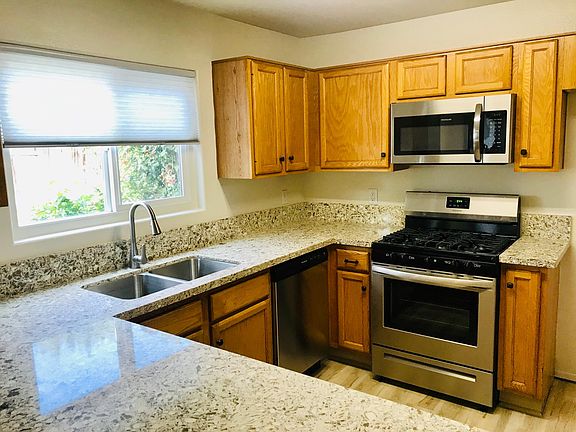 Available June 1st. Spacious 3 Bedroom, 3 Bathroom two story home + Den/Office in a wonderful neighborhood in Southwest Bakersfield. Newly remodeled throughout with luxury vinyl plank flooring, brand new carpeting, and fresh paint. New quartz countertops and elegant stainless undermount sink in the kitchen. New stainless steel appliances. Very spacious and open floorplan. One bedroom downstairs with attached bathroom. Beautiful master bedroom upstairs with bathroom and large walk-in closet. Third bedroom and third full bath upstairs. Bonus room / den / office upstairs. Elegant vaulted ceilings. Ceiling fans in every room. Large pergola covered patio over-looking spacious backyard. Sprinkler system front and back. Large lot provides room between neighbors. Indoor laundry room with gas and electric hookups. New cellular shades throughout keep the temperature and electricity costs down in the summer. Lawncare and trash included! The property is attentively managed by the property owner, not a management company. Minimum requirements are a total household monthly gross income of 3x rent and a credit score of 650. Showings will be scheduled after applicants have been pre-screened and meet the minimum requirements. This property is only listed on the Zillow network (Zillow, Trulia, Hotpads) any other listings for this house are a scam (especially Facebook and Craigslist). Lawncare & Trash/Recycling included. Renter to pay all other utilities. Range/Oven, Dishwasher, Microwave included. Washer, dryer, and refrigerator to be provided by renter.
