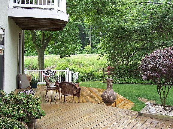 Completely remodeled in 2007, Finished basement, central vacuum, all new insulation, wiring, windows. Two six foot (Frank Lloyd Wright replica) leaded glass windows in den. Home was Tyvec wrapped in 2000. Stucco exterior. New roof in 2000 with lifetime guarantee. Three skylights. Custom design antique bronze iron loft railing and matching banisters. Contemporary kitchen with white high gloss cupboards and pantry. Advantium Convection oven and all newer appliances. Corian countertops. New demand hot water tank. Six large storage cupboards in finished basement with additional storage in garage with pulldown staircase. Garden shed with loft on rear of property. Jacuzzi tub in master bedroom. Additional deck off master bedroom and walk in closet. Ten by ten three season sun room with ceramic tile floor off attached main deck.
