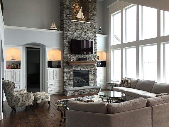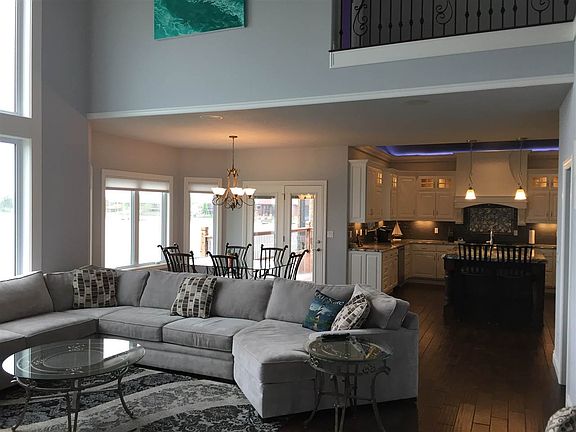 Spacious 5 bedroom 3.5 bath in a beautiful private neighorhood. This home features a main floor large master suite, balcony overlooking the living room area, open floor plan for ease of intertaining, theater room, wet bar, and a 40 foot deep third car gargage for all of your toys! Covered back deck and patio overlooking the lake with your own private boat dock. Spray foam insulation and high efficiency equipment for energy savings thought the home. Many more features in this home well worth the look!