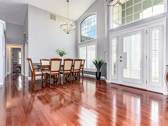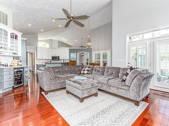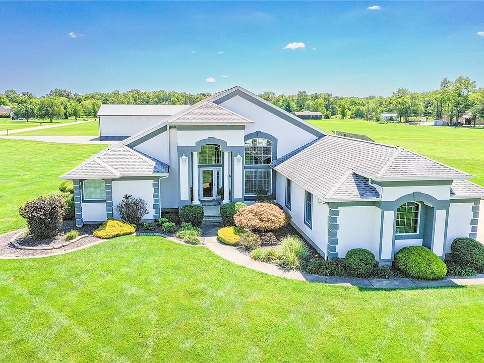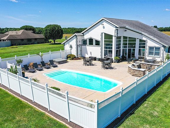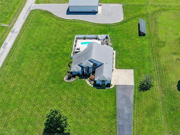 STUNNING, QUALITY, INVITING, TASTEFULLY UPGRADED IN 2020 WITH FRESH MODERN DETAILING-Living/dining/entry combination. Family/kitchen/breakfast combination incudes gorgeous two tone custom cabinetry with matching entertainment center, fireplace surround, and coffee bar, wine chiller, quartz countertops in kitchen and all baths, contemporary ceramic backsplash, pantry, all new high end appliances.Custom blinds throughout on all windows and doors, new stylish brushed chrome lighting, hardwood floors, soaring ceilings, sunroom.Porcelain tile in master bath, soaking tub, double sinks, two walk-in master closets, additional private bedroom with en suite.Custom cabinetry in laundry with elevated washer and dryer.On demand hot water heater, solar panels, triple car garage, in-ground fiberglass pool, hot tub, large entertainment area with stone outdoor kitchen and seating surrounded by privacy fence and tropical plants, pole barn with electric, carefree stucco exterior, beautifully landscaped. Additional Rooms: Sun Room