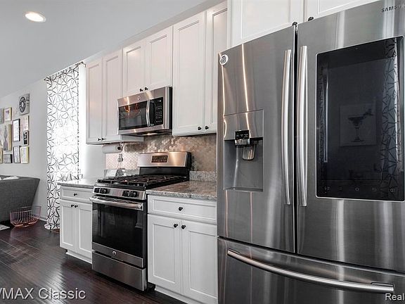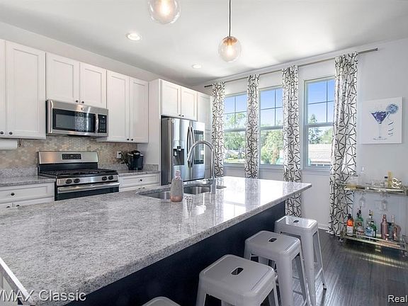 Fully upgraded end unit where the owner spared no expense. This end unit provides beautiful natural light on 3 sides, premium hardwood flrs, premium cabinets thru out, granite counter tops, Stainless-steel appliances, recessed lighting & premium stylish lighting, garage w/ keyless entry, custom blinds, ceramic tiled baths & much more. Entering from your private 2-car garage or private entrance, you will find the newly finished mudroom. The main floor with open concept & 10-foot ceilings from kitchen, dining, living area, & private library/reading space with an open California closet with direct access to your private balcony. 3 bedrooms with 2 full baths. Master suite with custom California closet WIC. Plenty of storage throughout. Second floor laundry area set between the 3 bedrooms for ease of multi-tasking. Townhome is centrally located where you are just minutes from I75 Walk or bike to nearby parks or into downtown Royal Oak for dining, shopping & entertainment.