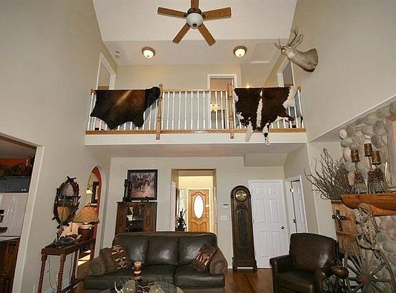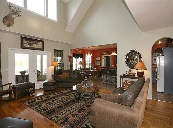 Traditional Country Home on 10 acres! 3 bed 2 1/4 Ba, 2 car garage with unfinished living space in garage. Formal & informal dining rooms, open kitchen with island & bar, beautiful stone work, double sided fireplace, hardwood & tile throughout, arch doorway, cathedral ceilings, main floor utilities, bay window with enclosed patio, master suite w/ large walk-in close,t, double sinks, full bath with jetted tub and separate shower. Beautiful Private setting with huge 30X60 shop with 15' awnings on each side. Water & power to shop. Lots of privacy!