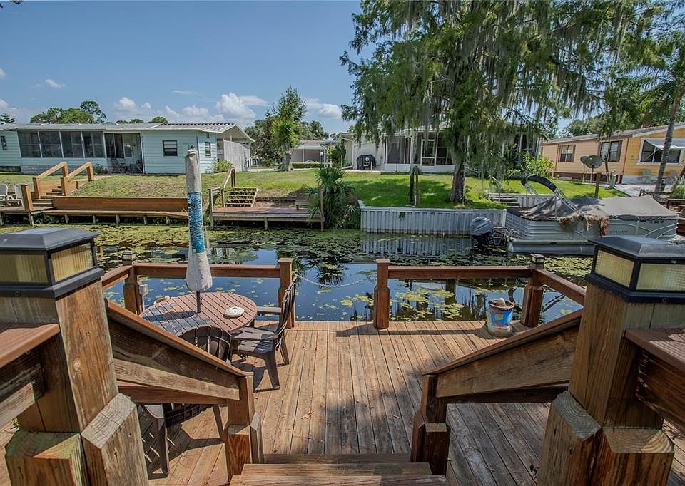 Welcome to your dream manufactured home in picturesque Leesburg, FL! This beautifully updated residence boasts 3 spacious bedrooms and 2 modern bathrooms, offering just over 1,400 sqft of comfortable living space. As you step inside, you'll immediately appreciate the open floor plan, designed for both functionality and flow. With no carpet throughout, maintenance is a breeze, and the stunning stainless steel appliances in the kitchen elevate your cooking experience. Convenience is key with an inside laundry area and an additional storage building/workshop outside (with electricity), providing ample space for all your needs. The true gem of this property lies in its exceptional location with No HOA. Nestled along a serene canal leading to Lake Eustis, you'll have direct access to the renowned Harris Chain of Lakes—a boater's paradise! Spend your days exploring the crystal-clear waters, picturesque landscapes, and abundant wildlife. Experience a scenic boat ride through the enchanting Dora Canal, known for its beautiful cypress trees and wildlife sightings. Fishing enthusiasts will delight in the rich variety of species that inhabit these waters, while those seeking a leisurely day can enjoy waterfront dining at local favorites. Whether you're an avid fisherman, a nature lover, or someone who simply appreciates breathtaking views, this home provides the perfect gateway to your lakeside adventures. Don't miss out on this exceptional opportunity to call this updated mobile home in Leesburg your own!