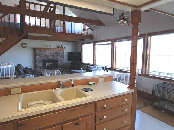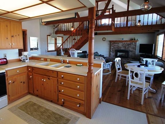 Open living floor plan to enjoy captivating river view from nearly every location in the house! Wide plank pine floors and wood work throughout. Inviting river-facing deck with hot tub to relax and enjoy the view. Great location is just a few minute walk to the beach, restaurants, shopping and air strip.