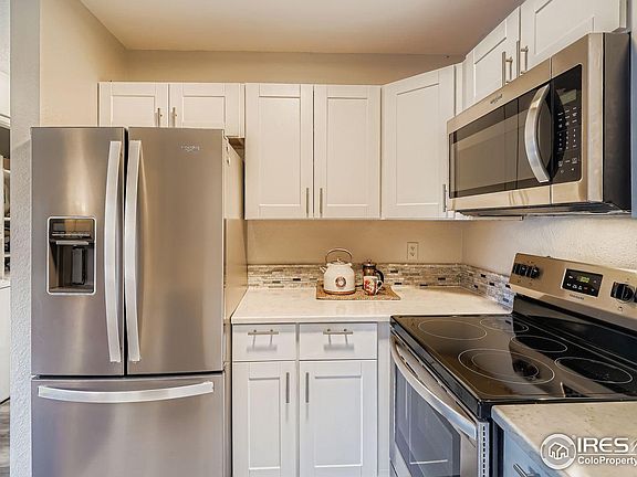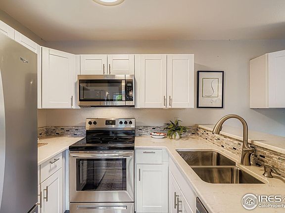 Come take a look - you're going to love this open-concept, fully remodeled condo with fresh, modern finishes; all you have to do is move in and enjoy. Whether you're a first-time buyer, remote worker, or just looking for a worry free investment property, this one checks all the boxes. The new kitchen features Caesarstone counters, new cabinets, and stainless steel appliances. Sizable living room with wood burning fireplace, and southern exposure that offers natural light throughout. The primary bedroom features an en-suite bath and double closets. Both bathrooms are fully updated with tasteful shower tile and vanities. Also included is a stackable washer-dryer and an inviting patio with European tile flooring. A 3D tour is available to preview before your live showing. For showings, feel free to park in the Lucky #7 parking spot on the south side of Building 3515, located at the end (i.e., fewer door dings) and near the unit. Convenient location that is a close walk to Tangerine for coffee and brunch, Mojo for happy hour, or hop on your e bike for a quick ride to Pearl Street. Easy access to Hwy 36 if you're heading to Denver, and VA approved for those who served our country.