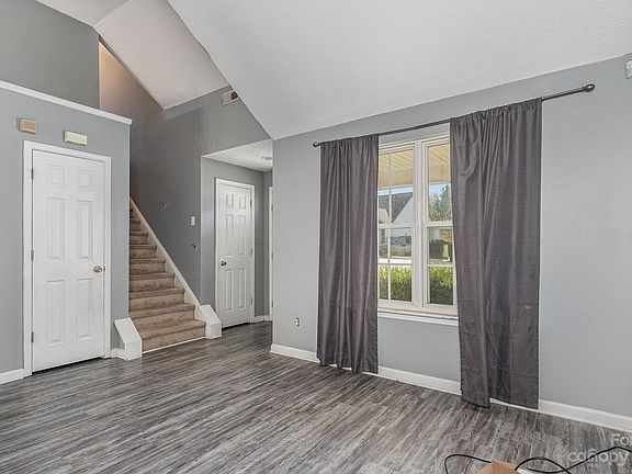 Open Floor plan home in small community with no HOA. Home sits on the last street in a community tucked inside 485. Rozumny Ridge has easy access to 485, Hwy 16, Uptown, Airport and Mountain Island Lake. This property borders privately owned 28 acre lot that is in flood zone. Home has an above ground pool with deck in the private backyard. Downstairs has open floor plan, perfect for entertaining. Upstairs has large primary and 2 more bedrooms.