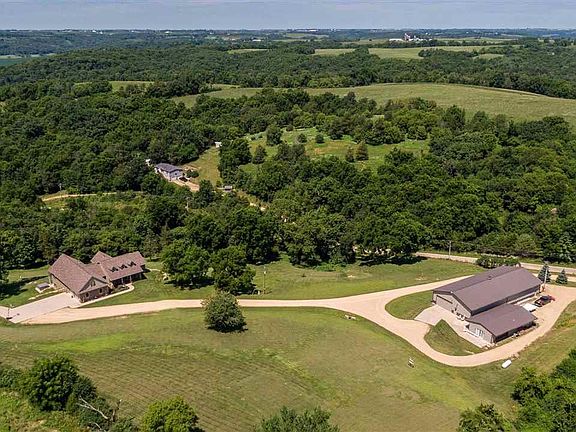 HOME IS WHERE THE LAND IS! This home and property has everything you could need. Custom built in 2014. This home was built to enjoy and entertain with so many high end finishes. 2 heated sheds, 1 is 96'x42', 2 is 52x22, and on 20 acres! Enjoy the privacy of this home located just outside of Platteville. Home features over 5560 sq ft of finished space! 4 BR, 5.5 BA, gorgeous, giant master bedroom with walk in shower, jetted tub, heated floor, double sided fireplace, wet bar and access to the deck. Gorgeous hardwood floors, granite tops, pantry, trey ceilings, double sided stone fireplace in great room, 9' ceilings up and down, walk in closets for all main level bedrooms, custom cabinets, gorgeous woodwork throughout. 2 hvac units and also in floor heat with 9 zones/thermostats, vault entertainment, bathrooms for all bedrooms, The downstairs cherry with stainless kickrail wet bar features built in coolers and sure to make entertaining amazing. Large maintenance free deck with glass panel railings, stamped concrete patio, oversized attached garage, Then there is the wine cellar and giant walk in gun safe. Property not only offers privacy and everything you could need and also offers amazing hunting and lots of room for animals here with good fences and a mix of woods and pasture. Enjoy this living each and every day. For the qualified buyer this property is sure to offer everything and more. Like new and ready to move right in. No need to build when you have this property just waiting for you to come and enjoy. Many, many other features of this magnificent property.