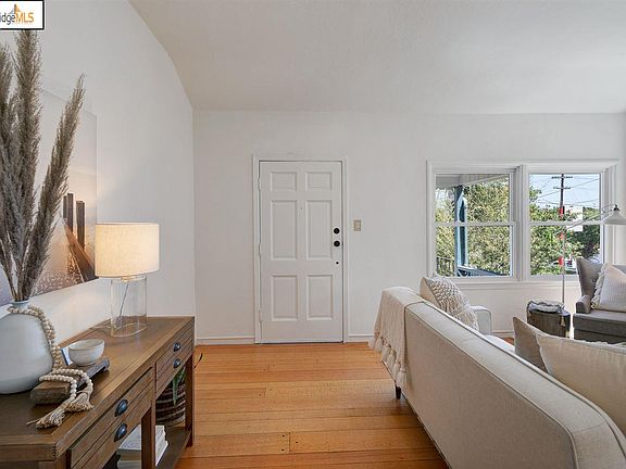 This home combines quintessential neighborhood living w/vibrant dining & shopping nearby. On a tree-lined, cul-de-sac block-- full of friendly neighbors. Front steps rise to a classic porch. Inside, top-to-bottom adorableness, w/oak floors, copious windows & natural light. Living room w/high ceiling features toasty fireplace. An arched centered landing leads to the dining room, then large kitchen. An ideal layout! The kitchen has stone counters, stainless appliances & wood cabinetry. 2 generous-sized bedrooms. The master has an ensuite bathroom, large closets & doors to the backyard. The front bedroom enjoys neighborhood views. An adjacent full bath complete with tub sits central. The yard is paradise! Dotted w/flora, stone pathways, patio + decking. Lounge, dine & entertain. Look up! A massive coastal redwood. An ultra-convenient location w/Farmer Joes, Peet's, Nama Sushi La Farine and more! Easy access to Int. 580, Fruitvale BART and other transit options.