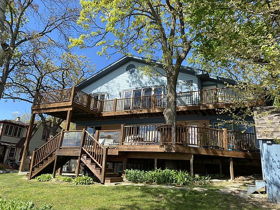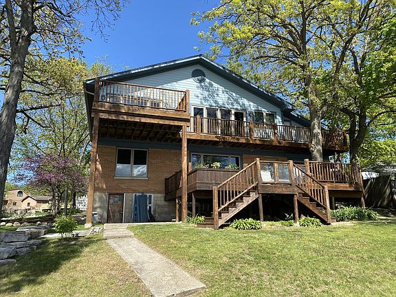 Custom built 2 story with full walkout basement on beautiful Island Lake! 80 feet of lake frontage located on quiet street with great sunset views! Enjoy boating. fishing and swimming or winter snowmobiling, ice fishing and skating on the lake. Home features 4 bedrooms and 4 full baths with over 4000 sq ft of living space. Island kitchen has granite counters, hardwood floors and plenty of cabinet space, spacious living rm and cozy fireplace for the cool nights. Main level also holds a bedroom, full bath and office opening to your 20X33 wood deck that's perfect for entertaining. 2nd level has 3 bedrooms and 2 full baths, master with whirlpool plus separate shower, walk in closet and sitting area all opening to 2nd deck across entire back of property. Walk out lower level is partially finished with 4th full bath and possible 5th bedroom just waiting for your finishing touches. Solid build, exterior is Brick and Hardy Board, dual zone efficiency furnaces, central air and a new seawall in 2017. The village hosts lake fests, summer concerts and incredible fireworks display on the lake. Did I mention you'll have the best view from your back deck!