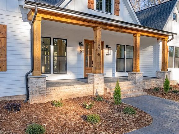 Stunning modern farmhouse living awaits in this expansive 4-bedroom, 2.5-bath new construction home on a prestigious 1.5-acre corner lot. The thoughtfully designed open floor plan features gleaming hardwood floors throughout main living area, anchored by a cozy gas fireplace with custom built-ins. The chef's kitchen boasts a large center island, perfect for entertaining. The primary suite offers luxurious one-level living, while an upper bonus room adds flexible space. Embrace outdoor living with covered front and back porches overlooking the scenic property. Additional features include a two-car garage with storage space. Built by a local builder, this masterpiece seamlessly blends modern amenities with timeless farmhouse charm.