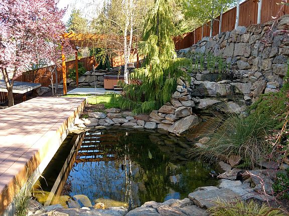Cascading waterfalls, picturesque landscaping, tranquility truly defines this property Better Homes and Garden would appreciate. Spa like features, complete with a hot tub await in your private back yard oasis. Property features a fully finished 3 car garage, fully fenced yard with covered RV storage, multiple outbuildings, fruit trees and meticulously manicured gardens and ponds. House features amazing natural light, views, 3 bedrooms with a master suite to die for. Kitchen upgrades galore!
