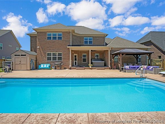 Immaculate brick custom home featuring a 3 car garage with motorized storage lift, 16x40 salt water pool and fenced yard. Offering an impressive 4,554 square feet, this estate has 5 bedrooms, 4.5 bathrooms, dedicated media room, loft area, crown molding. The bright entry way leads to great room with fireplace and builtin shelving, private office, half bath, a formal dining room or library, a dedicated guest room with ensuite bathroom, drop zone and large laundry room. The kitchen has upgraded cabinetry, elevated granite counter tops and stainless steel appliances to include built in microwave and gas range. The first level provides a generous sized primary bedroom with large ensuite bathroom, and walk in closet. Upstairs hosts a loft, media room with extra outlets and dry bar, a bedroom with ensuite bathroom, another full bathroom with two vanities, and 5th bedroom or large bonus room. Back yard offers upgraded pool deck, hot tub, and covered patio for shade. As a bonus, find the hidden room!
