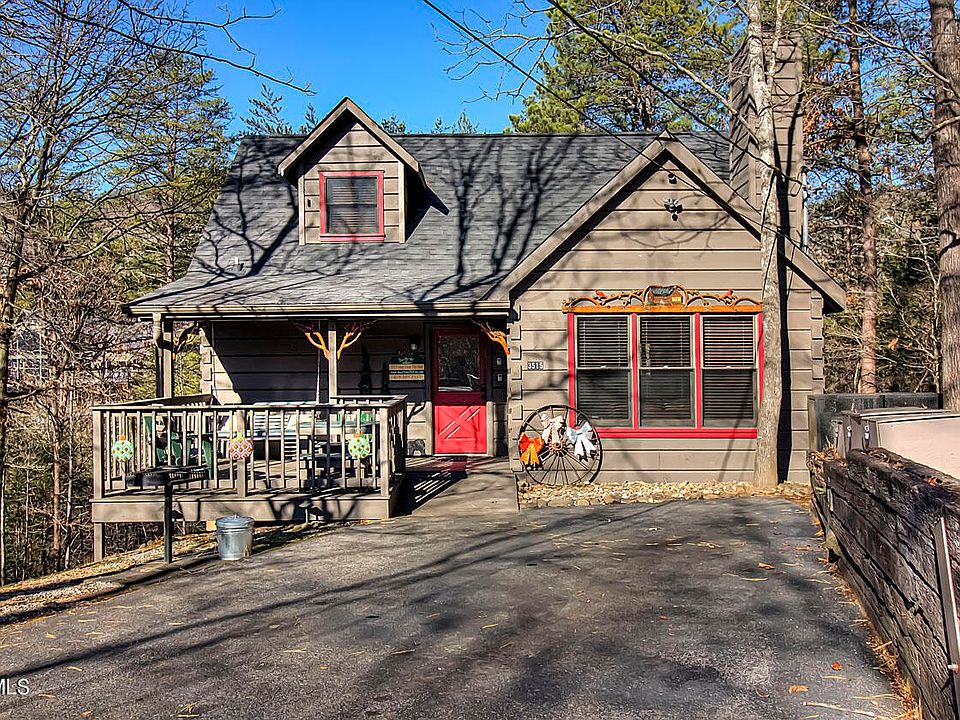 Charming well kept 1 bedroom/ 1 bath cabin in Country Pines. Covered front porch has a wide area for sitting and having delightful conversations. This 1164 sq ft cabin has a large great room with stone wood burning fireplace. The pull out couch allows for additional guests. Large full bath and bedroom has a queen bed. Kitchen is open and has granite counters. There is a door out to the covered back deck where you'll enjoy the hot tub. In the loft area there is a pool table and game table for your entertainment. All but the pool table on one level so it is extra appealing to renters who prefer not having steps. Many updates in the last few years. Country Pines is a great location for getting around in Gatlinburg or Pigeon Forge. Make an appointment today to view this special cabin!